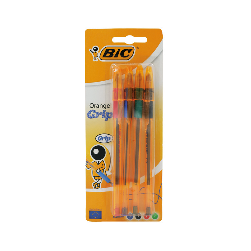 خودکار0/8 بسته4رنگ گریپ دار بدنه نارنجی فاین بیک