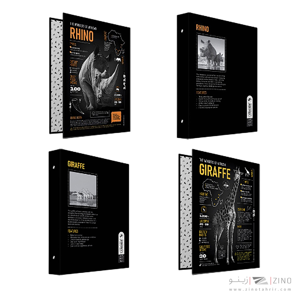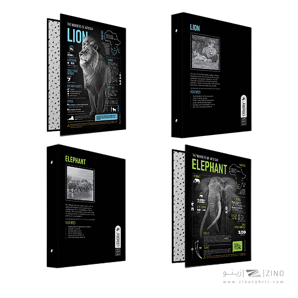 دفترکلاسوری26حلقه 100برگ قفل فلز جلدسخت پیل سری آفریقا