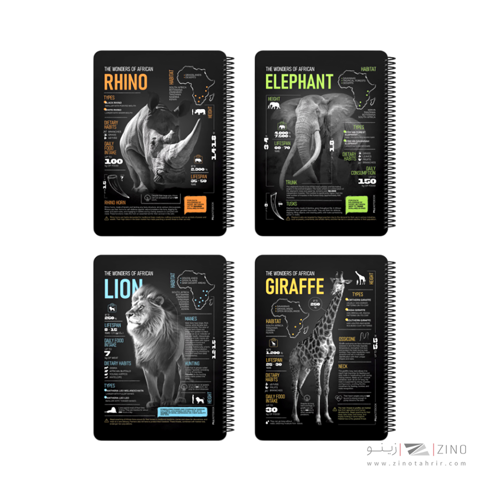 دفتر100برگ وزیری سیمی جلد سخت پیل سری آفریقا