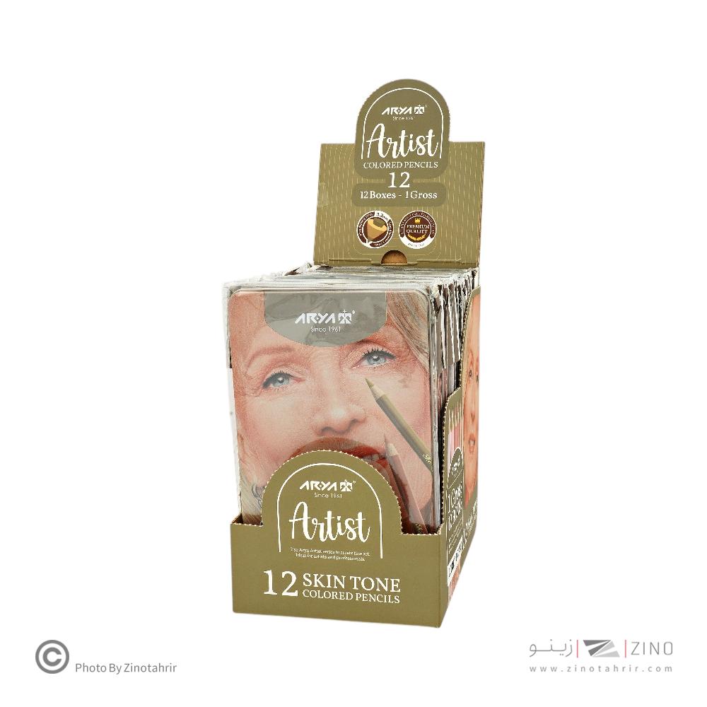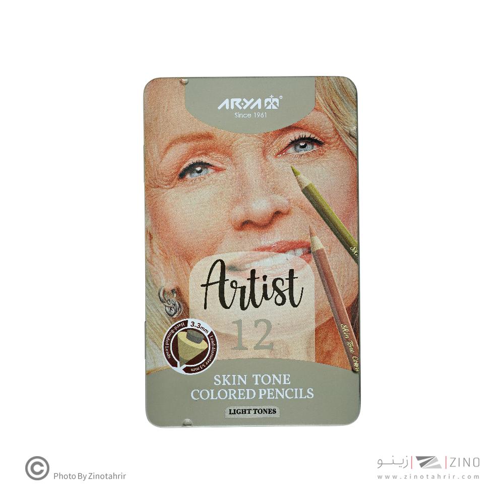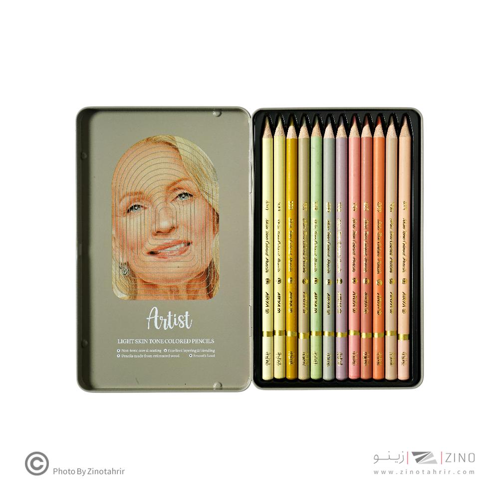 مداد رنگی12رنگ جعبه فلزی حرفه ای /آرتیست(رنگ پوست روشن ) آریا کد 3908